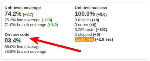 As you might guess from its title, the new section shows you coverage on new code. I.e. code that has changed or added. That means that if you're dealing with a legacy project that started at 0% coverage, you can use this extra section to track coverage on just what you're doing now, rather than having it muddled in with your backlog of missing tests. The result is that by focusing on coverage "on new code," you can hold both legacy and greenfield projects to the same fair standards.