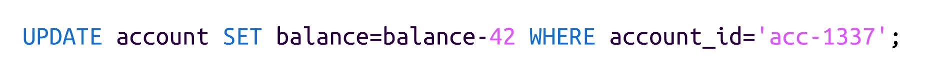 The balance of the account with ID acc-1337 will be decreased by 42. However, what happens when the first parameter is negative? The filled-in statement would look like this: