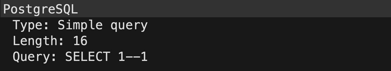 After confirming that it is possible to alter the syntax of a prepared statement by causing the creation of a line comment, we wanted to know if it's just possible to comment out parts of a query or if attackers could even inject new syntax. We experimented with several queries until we realized another fact about PostgreSQL: multi-line string literals are supported!