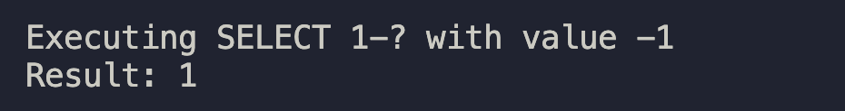 When running in simple query mode, libraries have to interpolate parameter values into the query themselves. Let's take a look at how PgJDBC, the most popular PostgreSQL driver for Java, handled the query SELECT 1-? for a parameter value of -1. This is the query that is sent to the database: