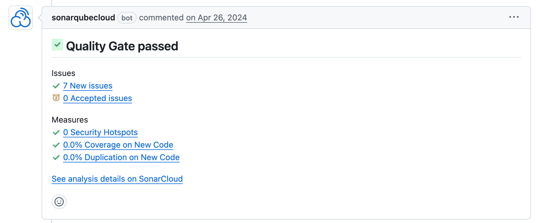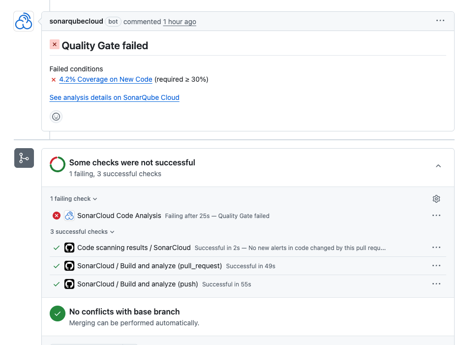run: mvn -B verify org.sonarsource.scanner.maven:sonar-maven-plugin:sonarBy leveraging the pull_request trigger and the GITHUB_TOKEN, SonarQube Cloud automatically decorates your PRs with analysis results.
