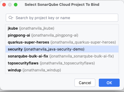 - Bind project: Once the connection is established, check the Bind project toggle. Search for your specific project key (e.g.,