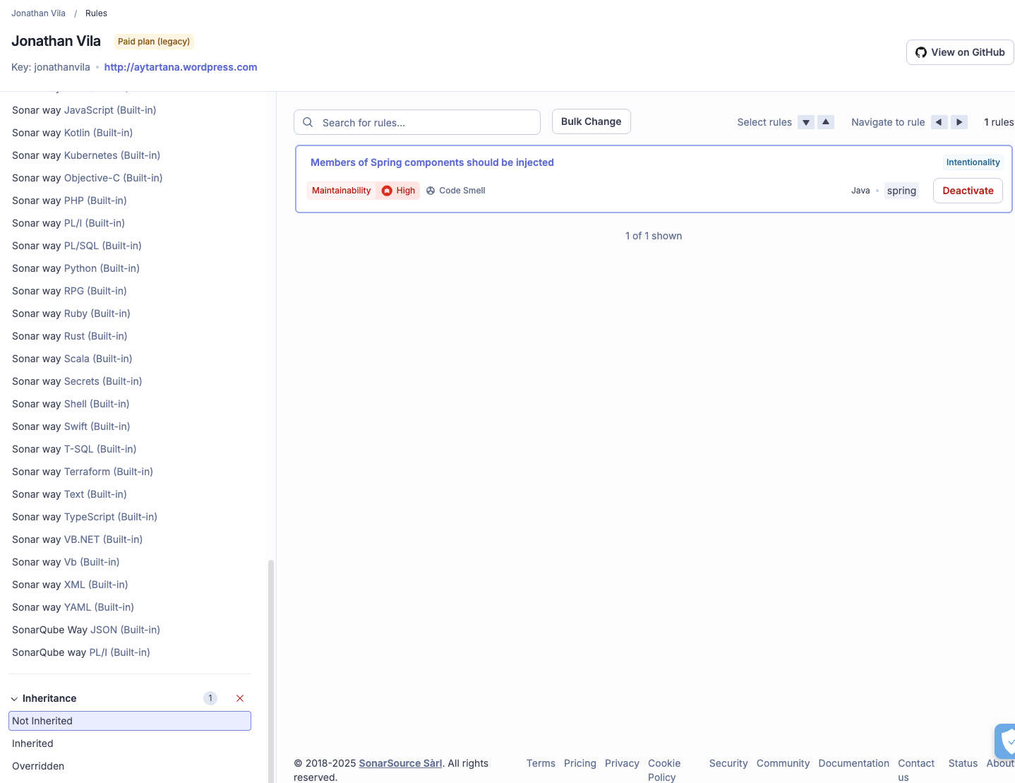 Inherit the Sonar way Quality Profile and customize it