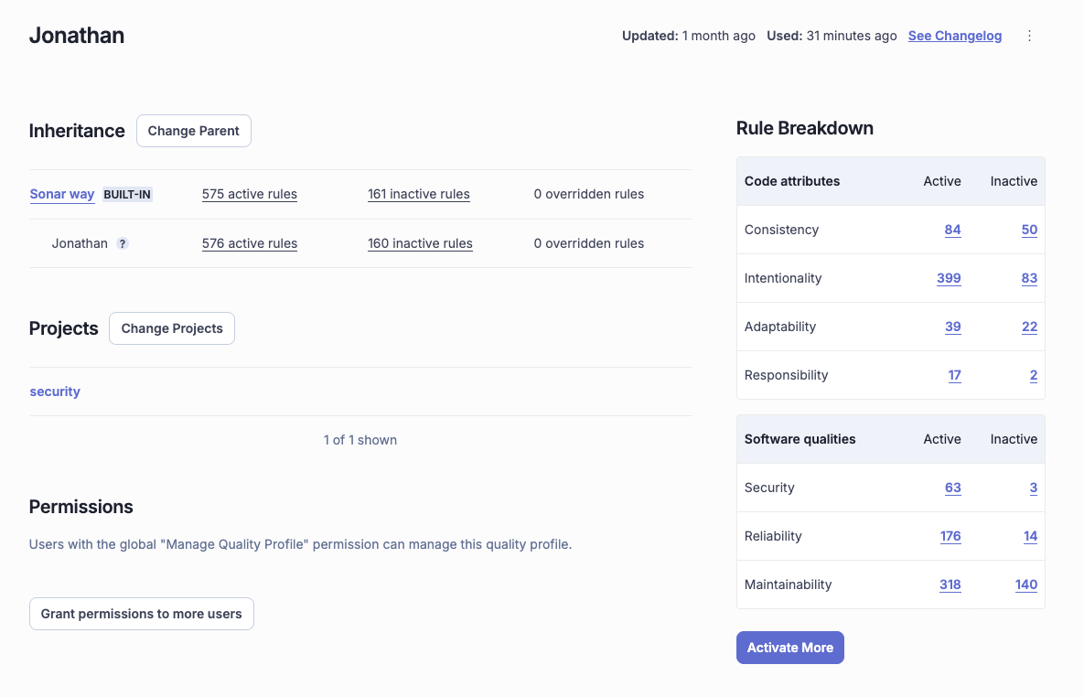 See the particular changes done in the new Quality Profile