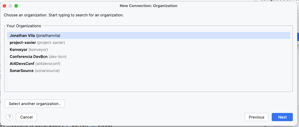 - Select platform: Name your connection (e.g., "SonarQube Cloud") and select the appropriate connection type.